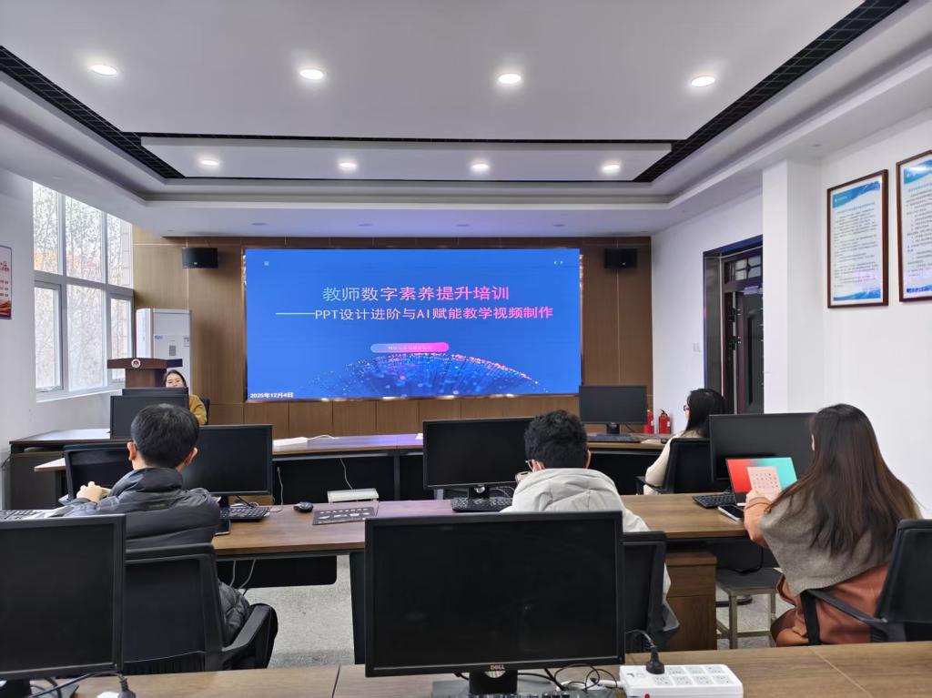 为积极推动教育数字化转型,助力智慧课堂建设,12月4日下午,由网络安全与信息化处主办的教师数字素养提升培训在计算机楼网络安全重点实验室顺利举行。本次培训聚焦“PPT设计进阶与AI赋能教学视频制作”,吸引了各院系教师参与。